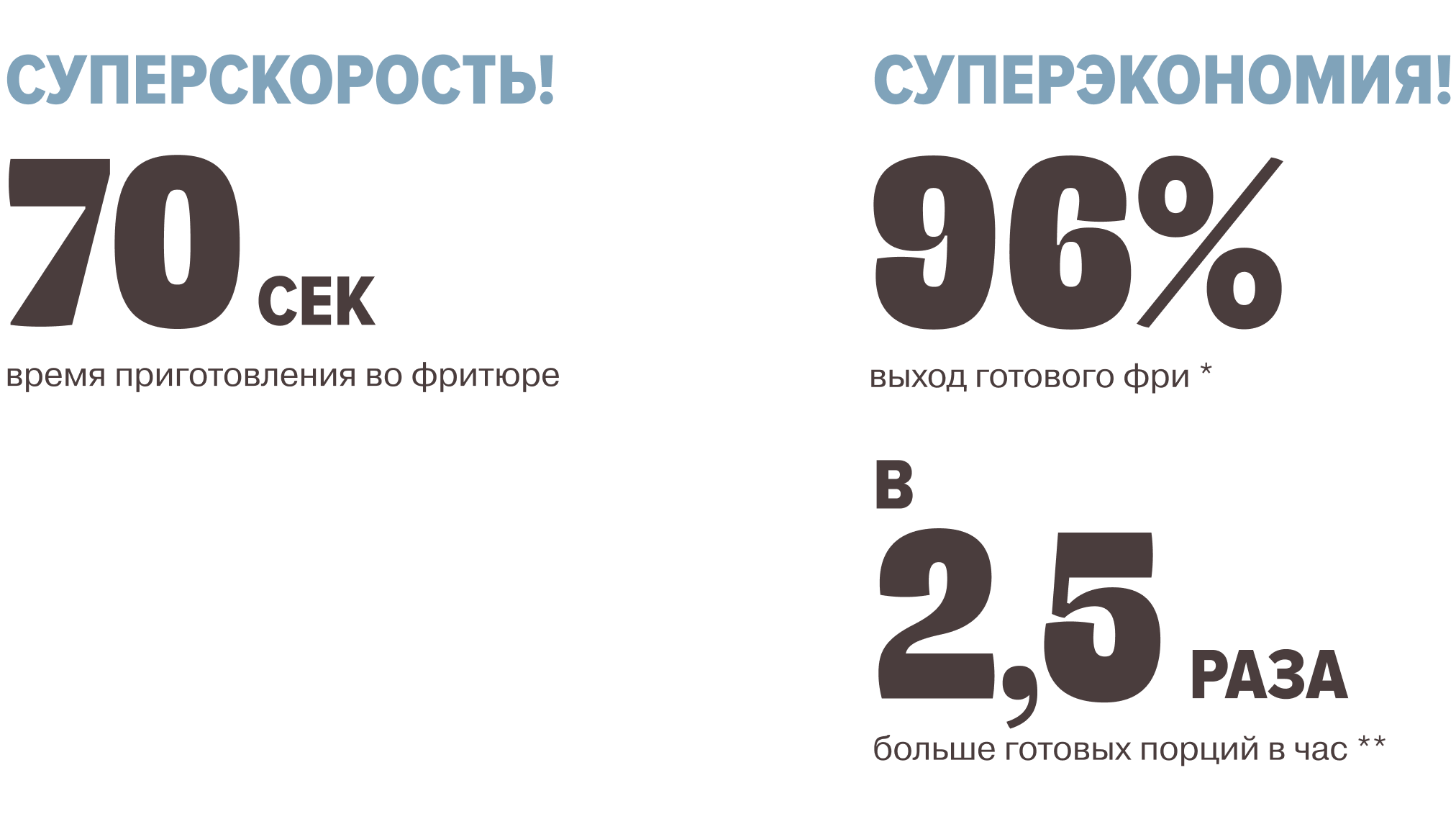 Самый быстрый и самый выгодный продукт WE FRY** — золотистый, хрустящий, идеально ровный фри со временем приготовления всего 70 секунд. Минимум ужарки, максимум вкуса!