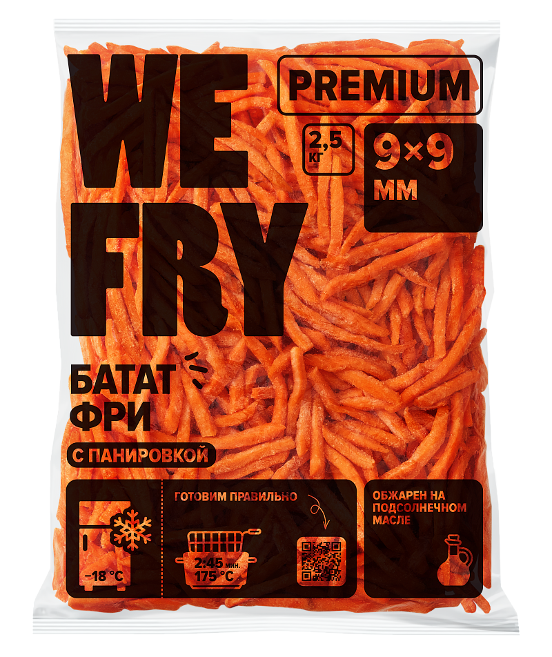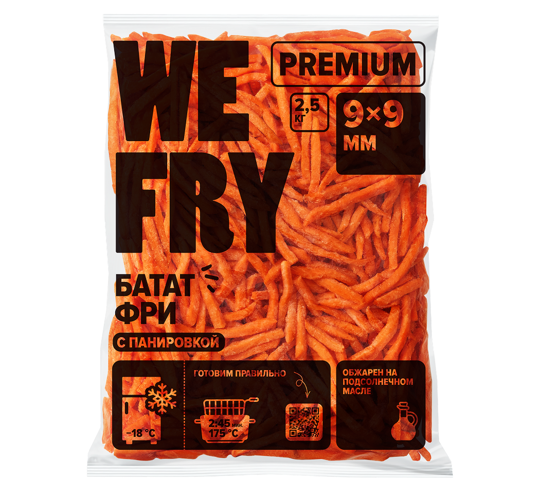 Батат фри WE FRY — яркая соломка «сладкого картофеля» в суперхрустящей панировке. Новый вкус, который удивляет гостей, и идеальная текстура, которая не подводит шефов.