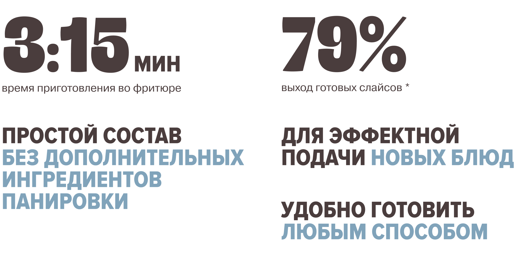 Слайсы WE FRY — аккуратные, ровные кружочки из натурального фермерского картофеля. Идеальная форма для классических и авторских гратенов и новых, необычных позиций меню. Этот простой и удобный продукт без панировки легко готовить любым способом: от духовки до фритюра.