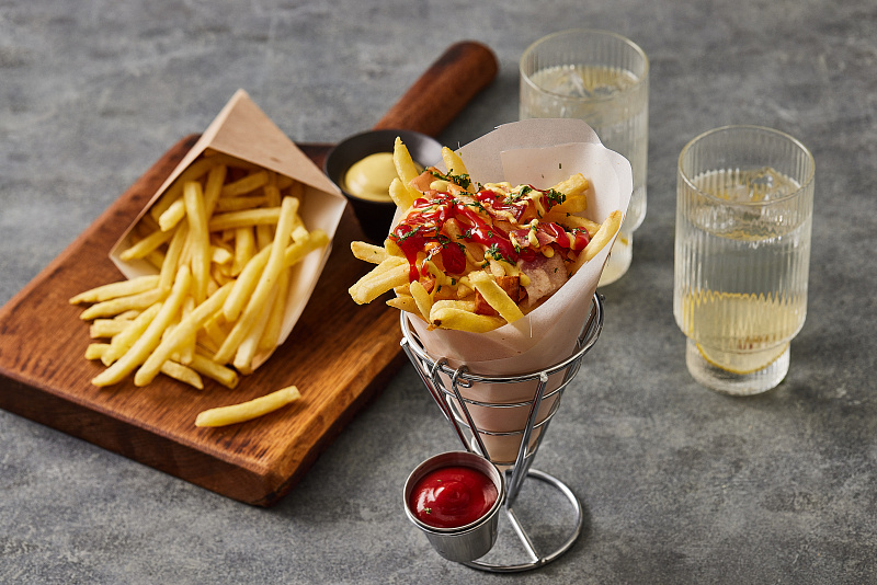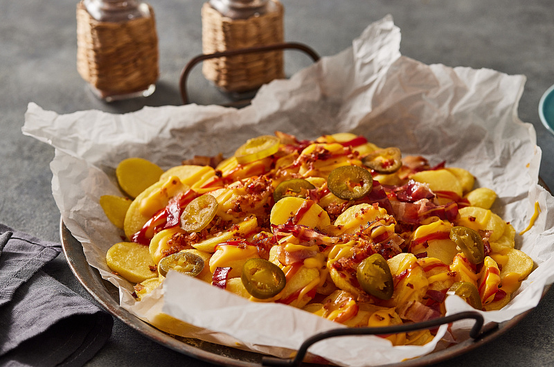 Картофель по‑деревенски с соусом дзадзики и сыром фета