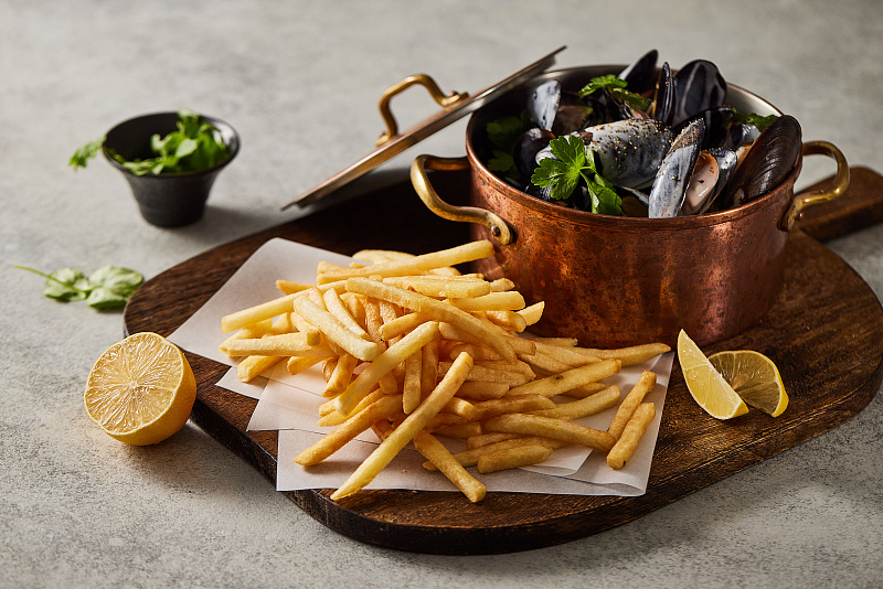 Fish&Chips с картофелем фри и соусом из зелёного горошка